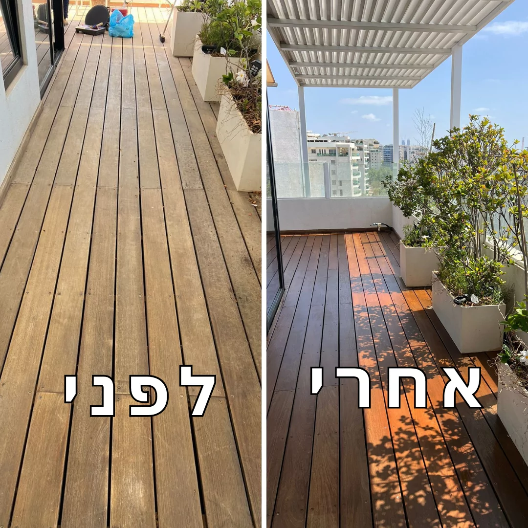אם הדק שלכם איבד מהברק, הפך לאפור, מלא ירוקת, כתמים או סימני בלאי – זה הזמן להחזיר לו את המראה החדש והיוקרתי.